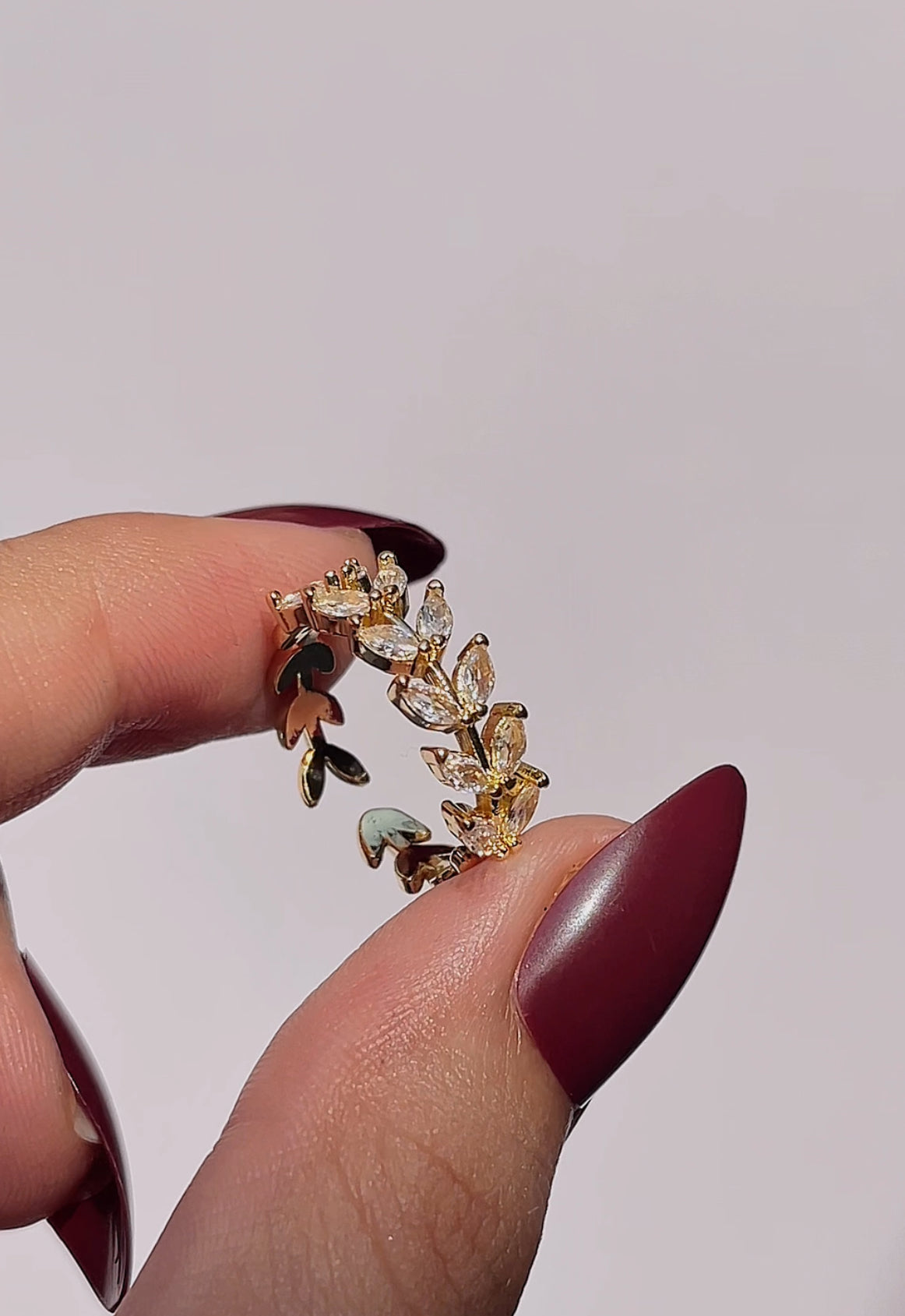 Graceful, delicate, and timeless—meet the Lilly Ring, a true embodiment of elegance. Inspired by nature's beauty, this adjustable ring features marquise-cut stones set in a leaf-like gold band, capturing the charm of blooming florals in every detail.
